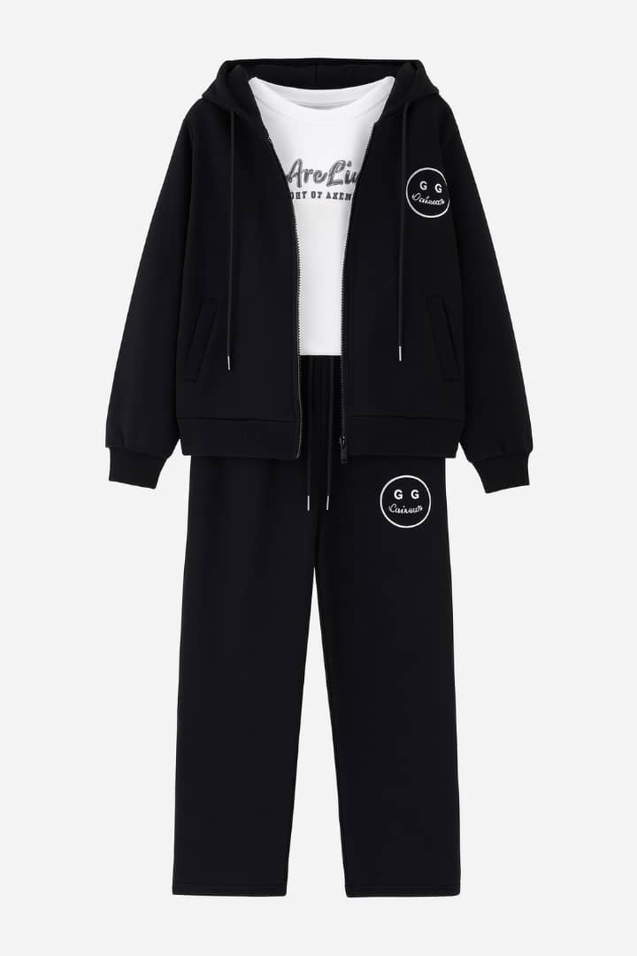 ست سه تیکه دخترانه{سویشرت/دورس/شلوار} شلوار این مدل به دوصورت بگ وجاگر قابل استفاده میباشد